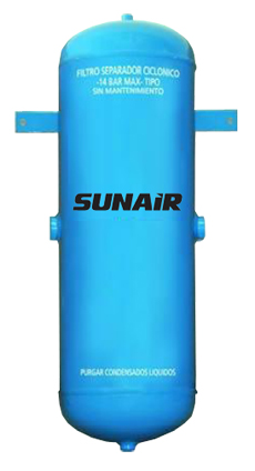 Condensa y filtra reteniendo los contaminantes líquidos/gaseosos por efecto ciclónico; separando con un rendimiento aproximado del 70% para los caudales indicados.